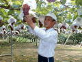 ひと房づつ、粒の張り具合をチェック。味は実際にひと粒食べてチェック